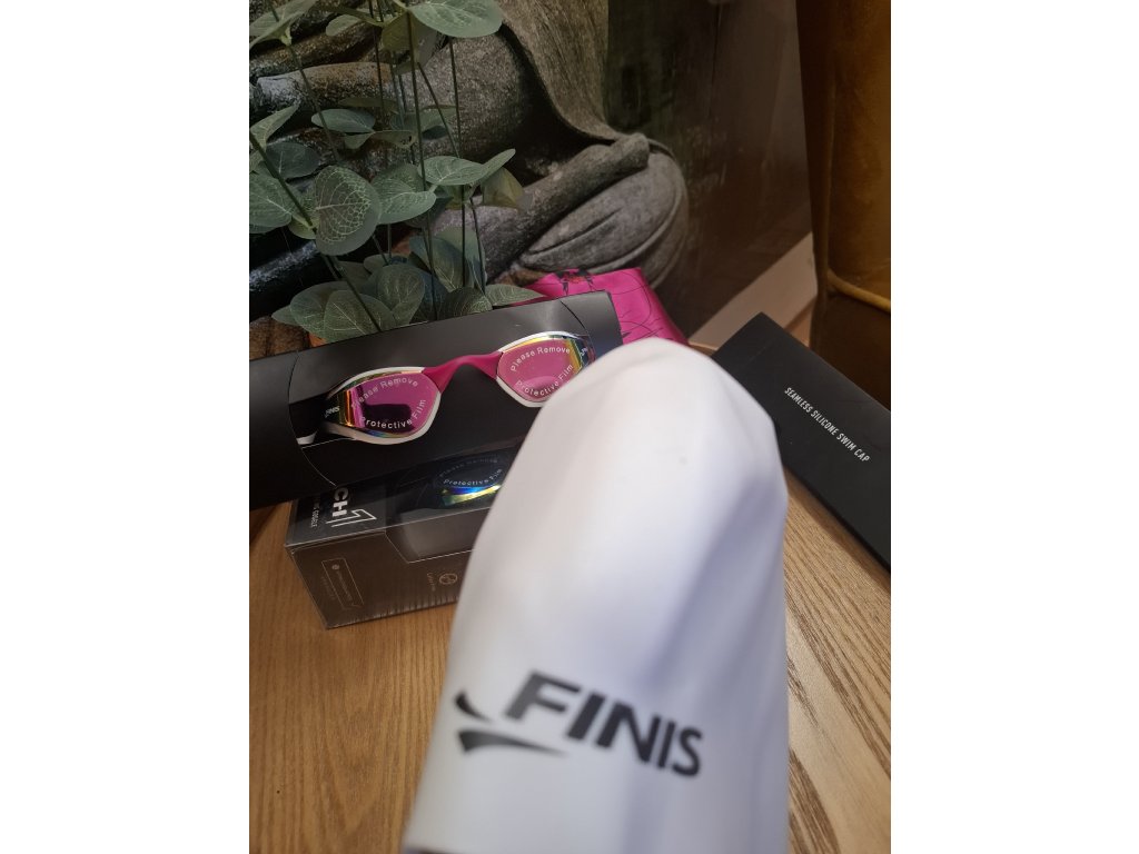 Balení obsahuje: plavecké brýle + silikonová čepice s logem FINIS + obal na brýle.